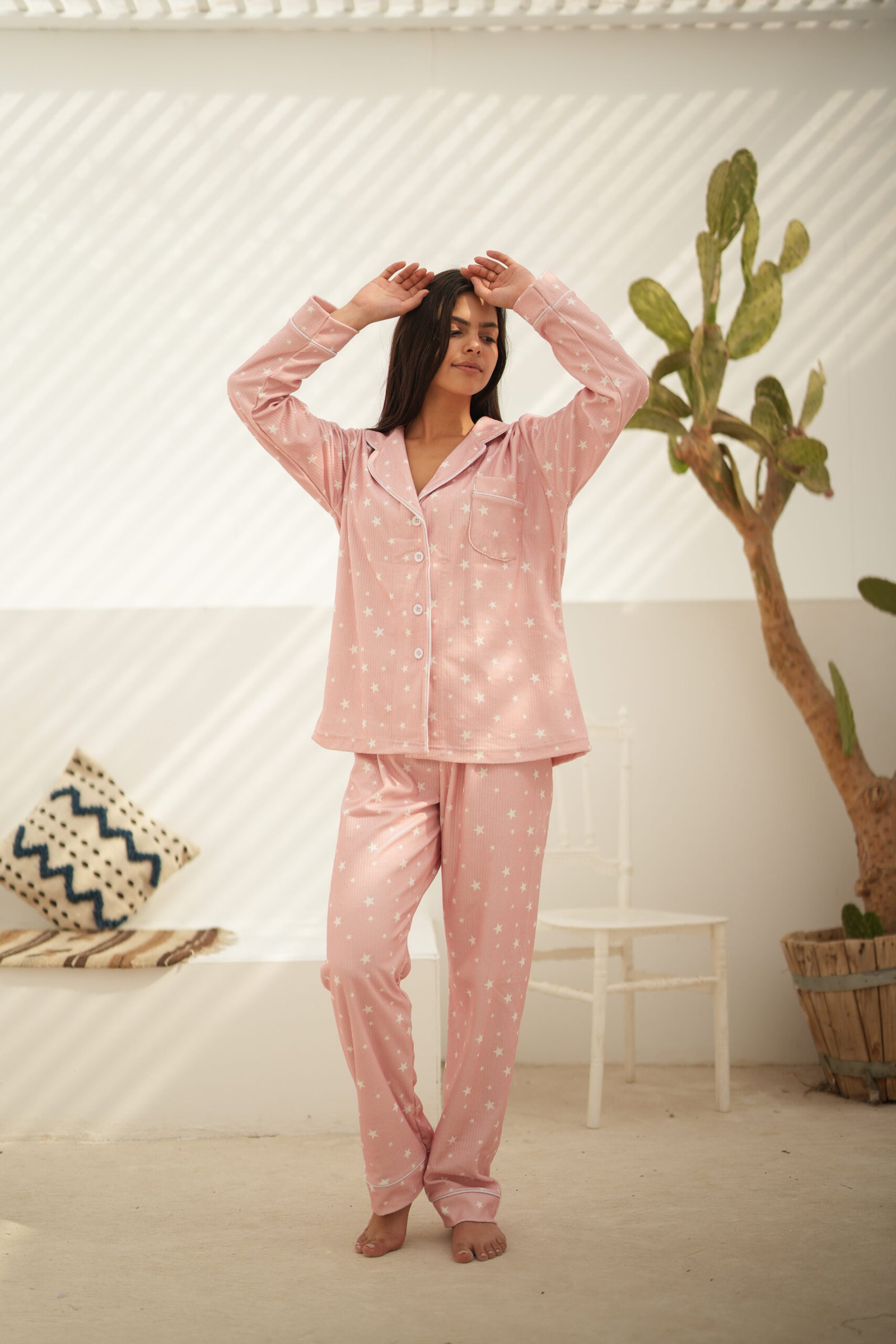 طقم قطيفة مضلّع بنقشة نجوم، ناعم ومريح ويدفي طول اليوم.