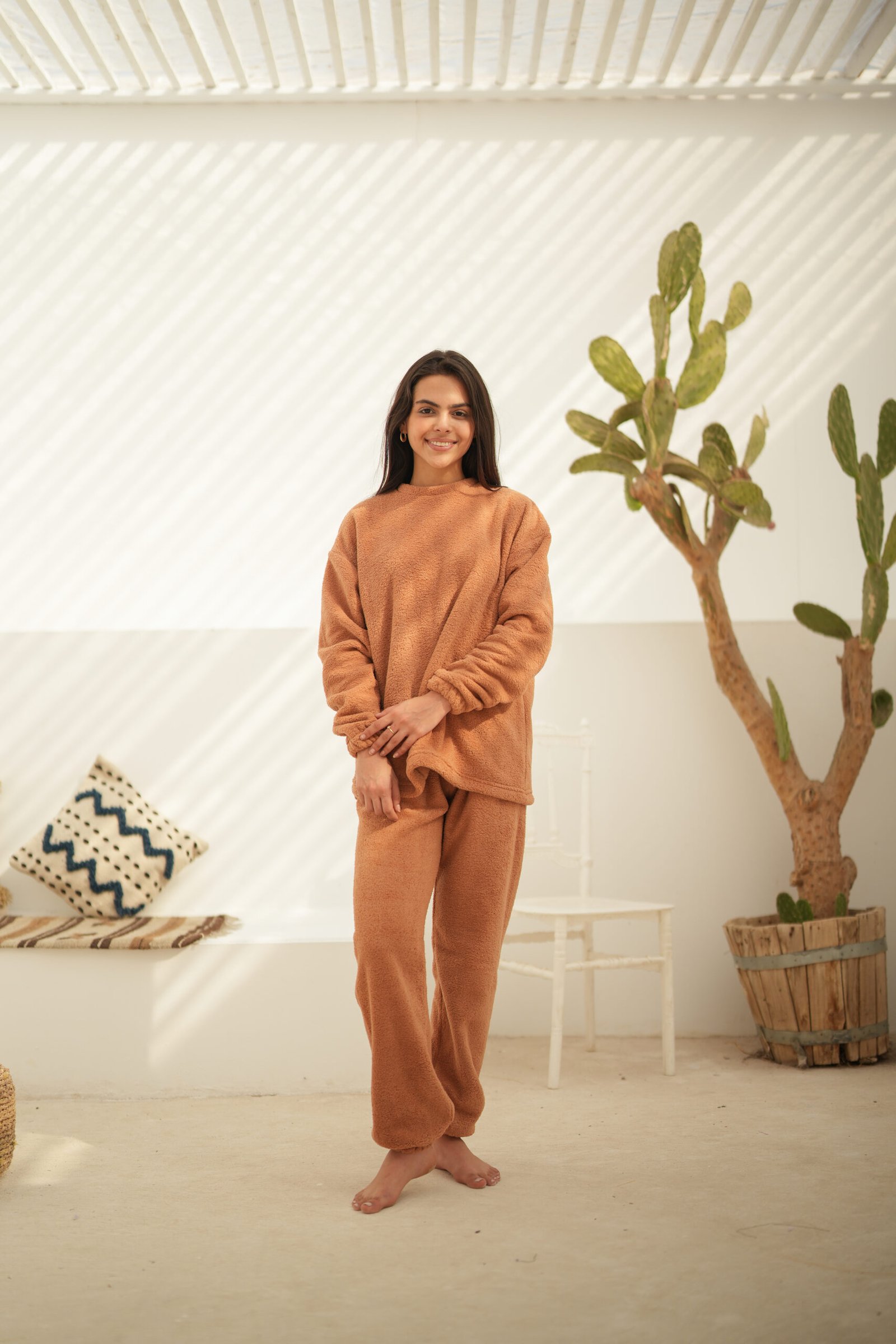 طقم شتوي فارو ناعم جدًا، بيدفي جدا وفي نفس الوقت خفيف على الجسم. خامة عالية الجودة ومريحة في اللبس، مناسب للشتا والبيت . متوفر بـ 10 ألوان عشان تختاري اللي يناسبك.