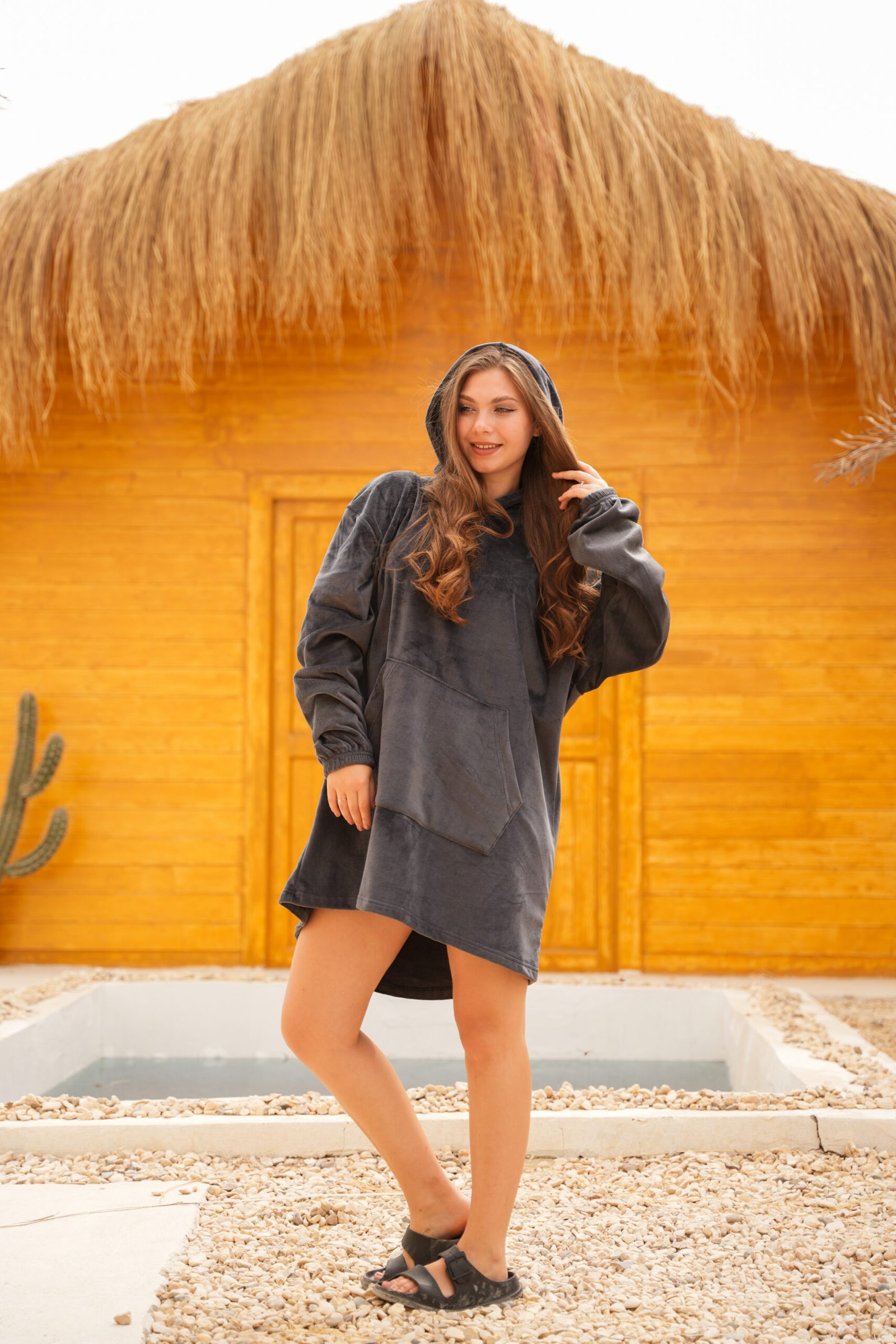 استمتعي بدفء مريح وأناقة بسيطة مع Cozy Plain Oversize Blanket Hoodie.