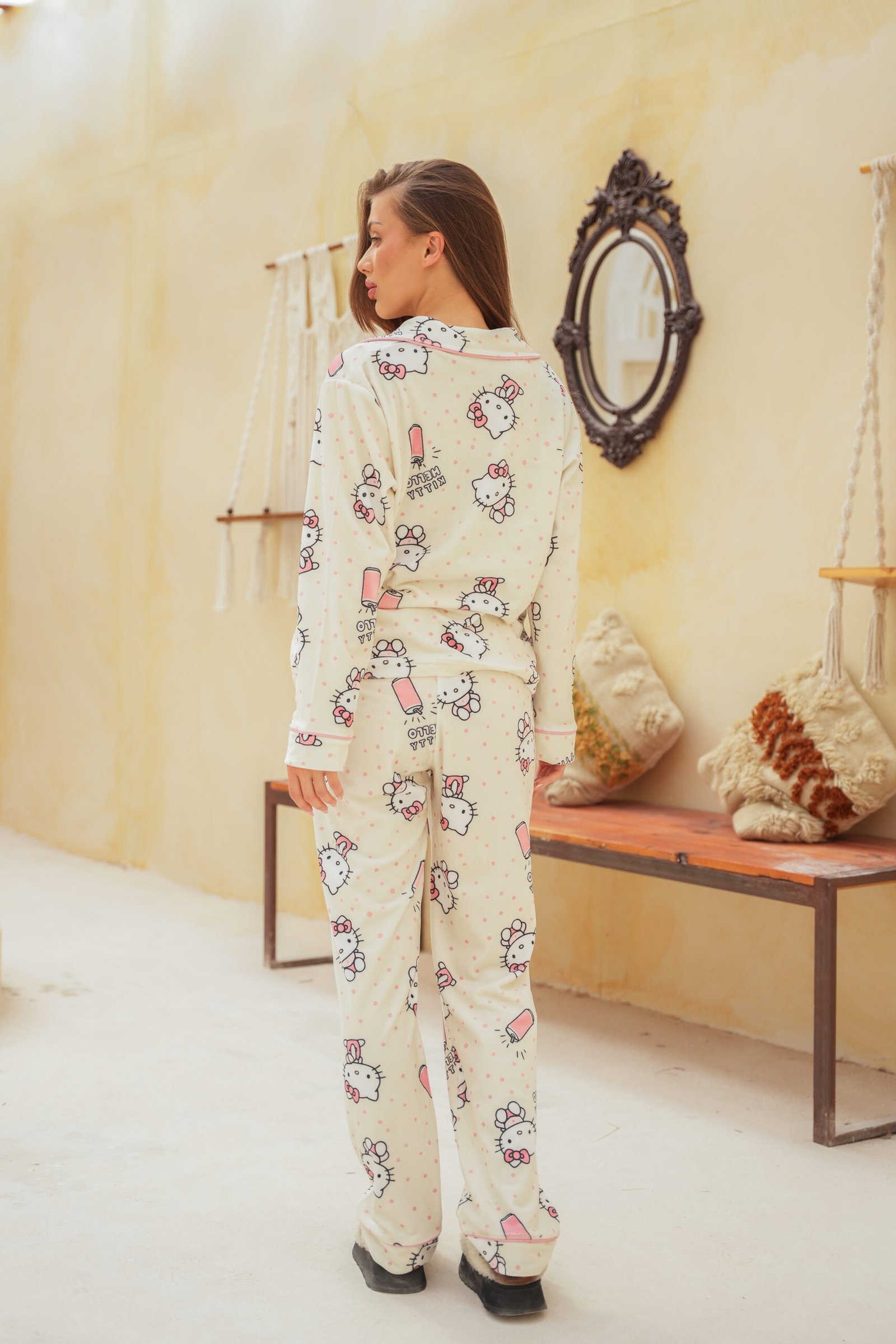 بيجامة Cute Kitty بخامة قطيفة مبطن مستوردة تمنحكِ ملمسًا ناعمًا ودفئًا مريحًا طوال اليوم.