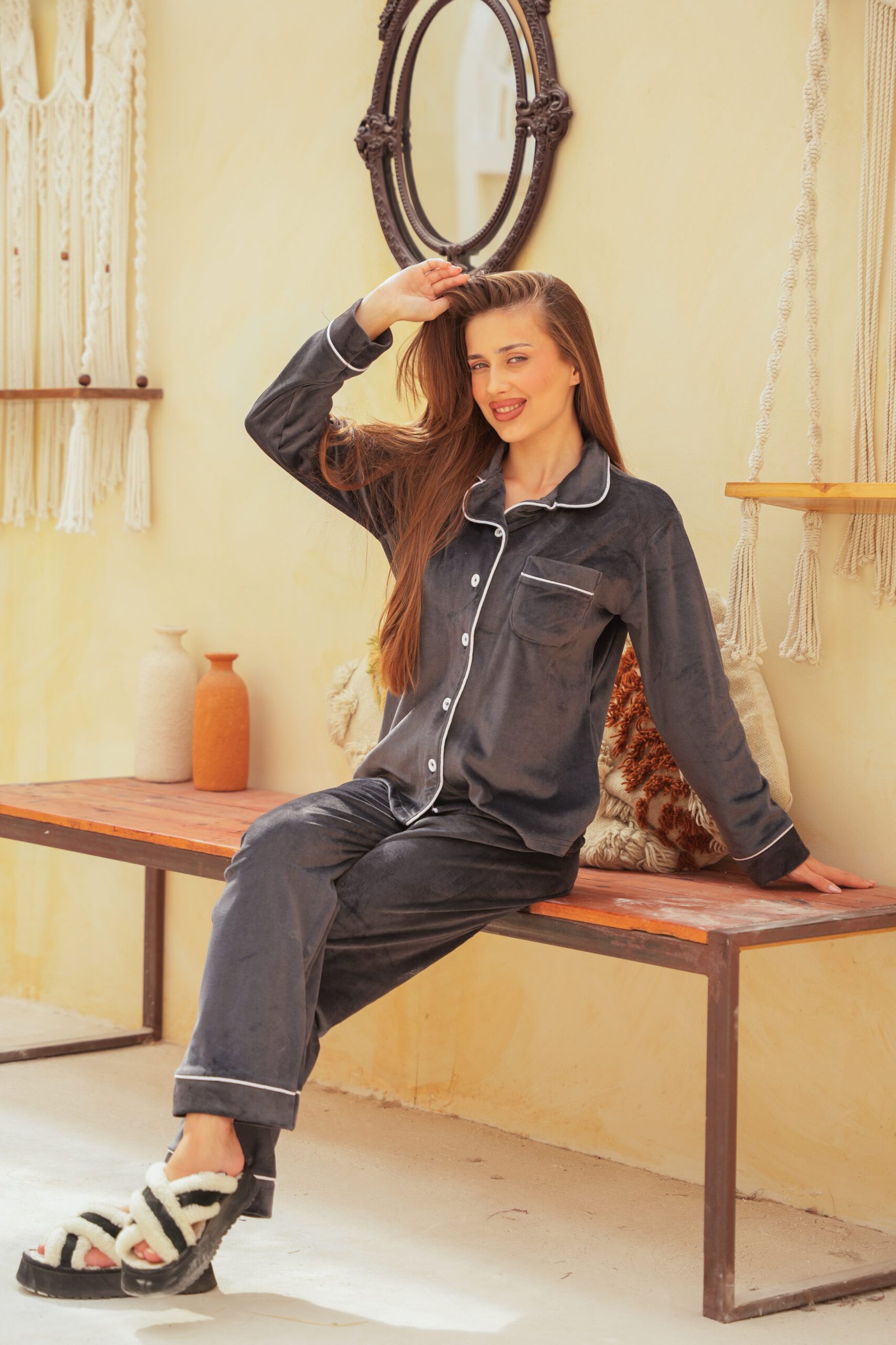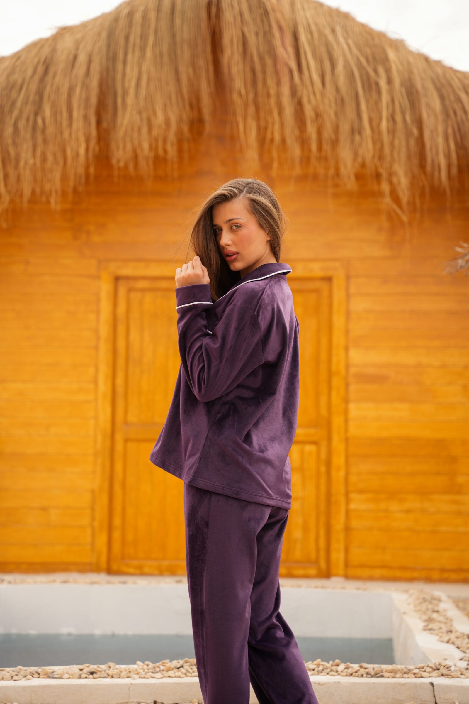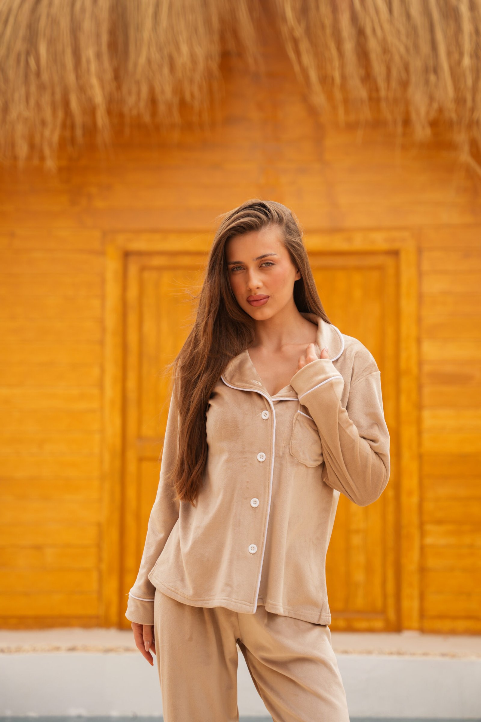 Velvet Cloud Pajama Set هي الاختيار اللي بيجمع بين الراحة والشياكة في قطعة واحدة.