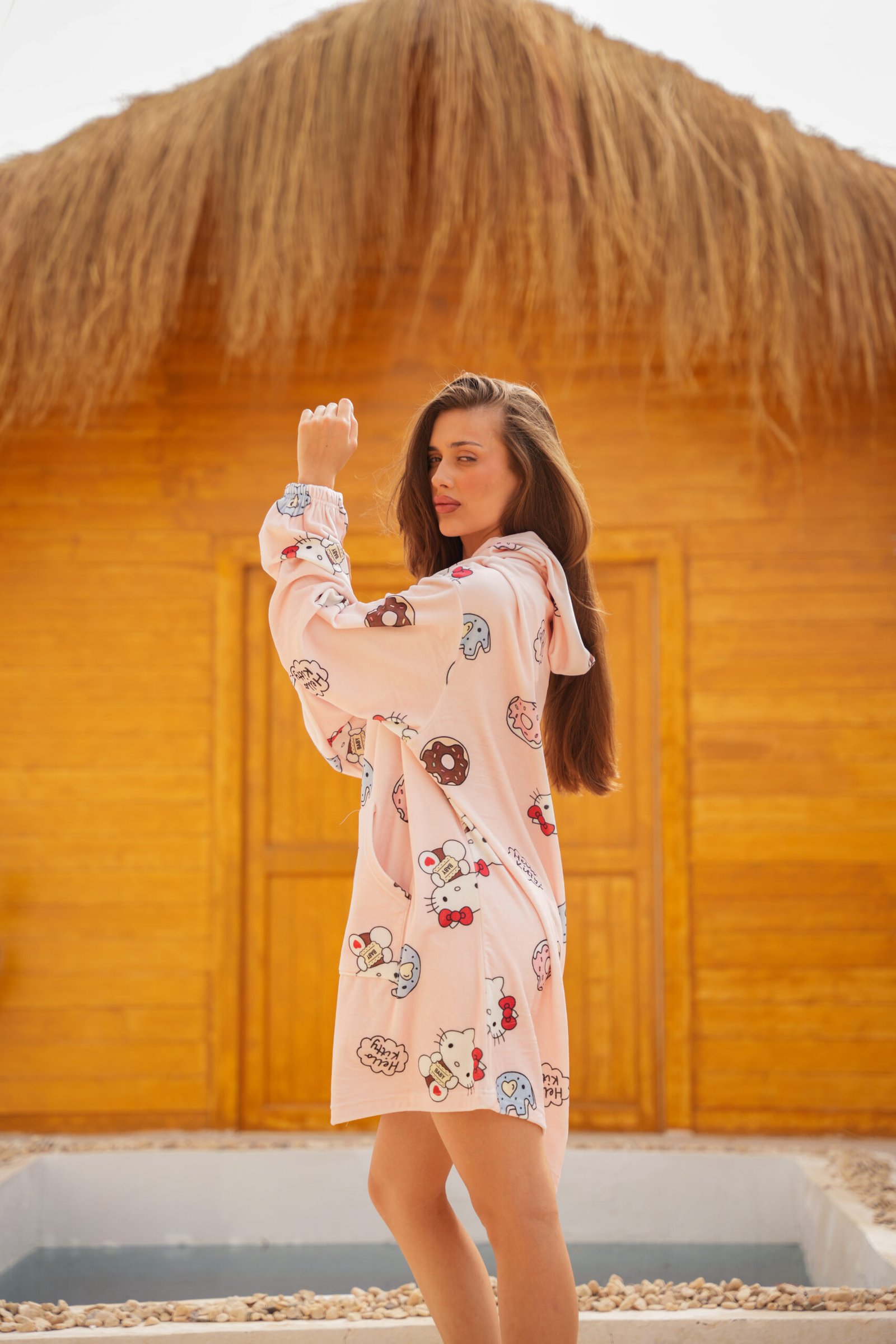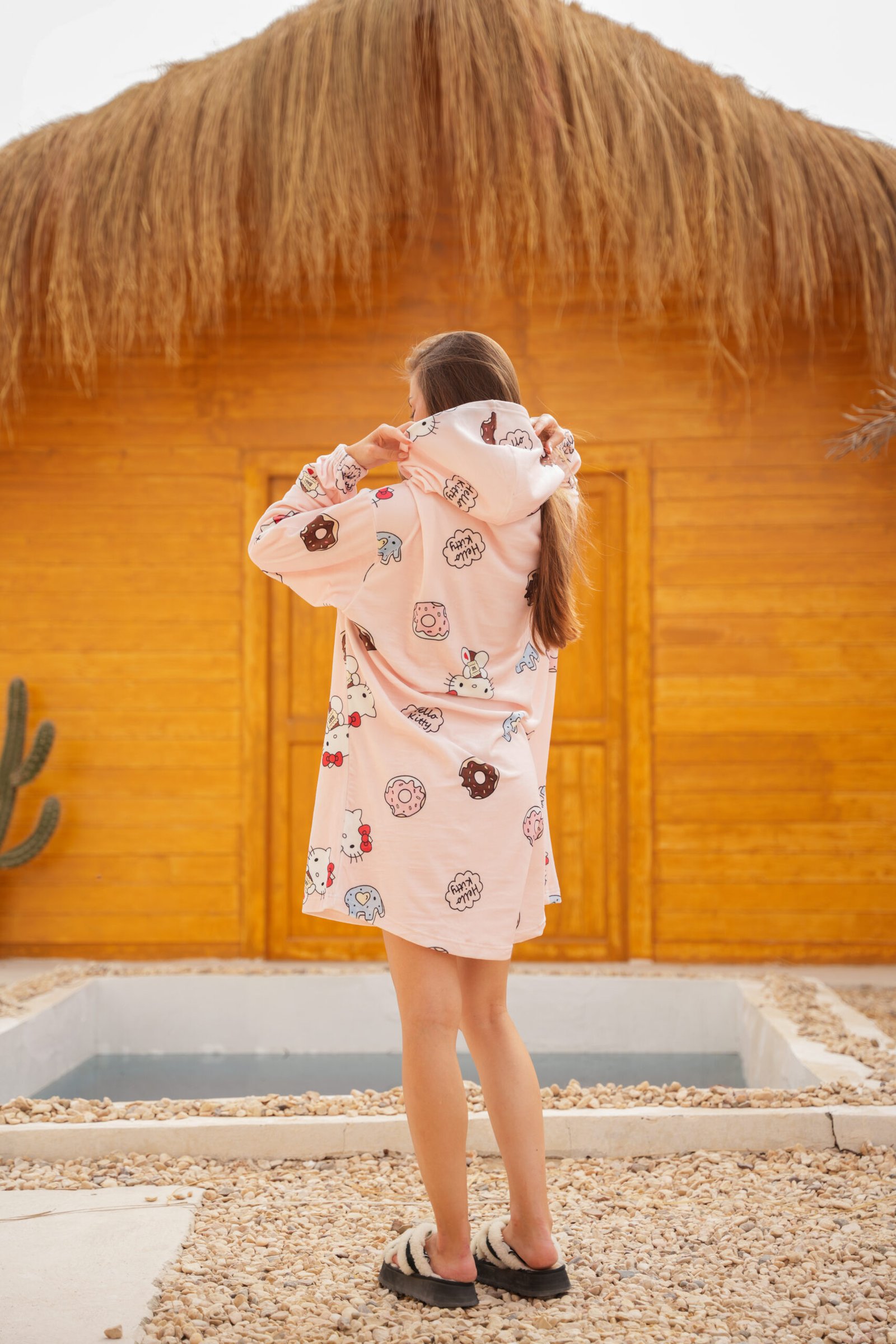 تصميم Oversize مع جيب أمامي كبير وطبعة دونات وشخصيات كيوت تضيف لمسة مرحة لبنات بتحب الستايل المختلف.